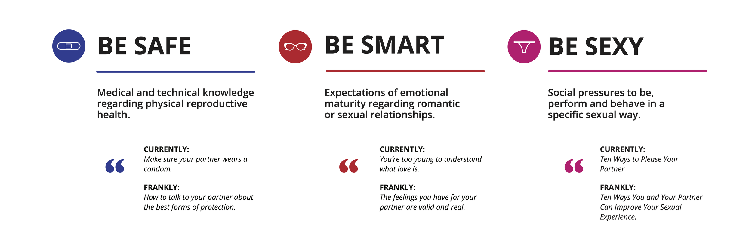 As teens define and develop their idea of sexual health they must reconcile three distinct types of conversation.