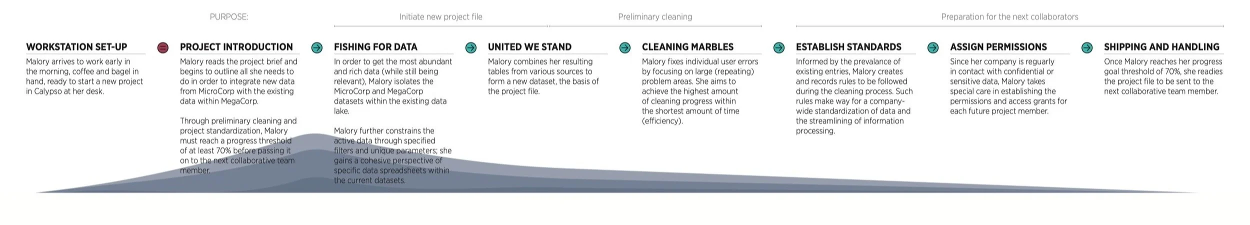 The User Journey Map details the experience of Malory, a data steward, using Calypso during a typical work day.