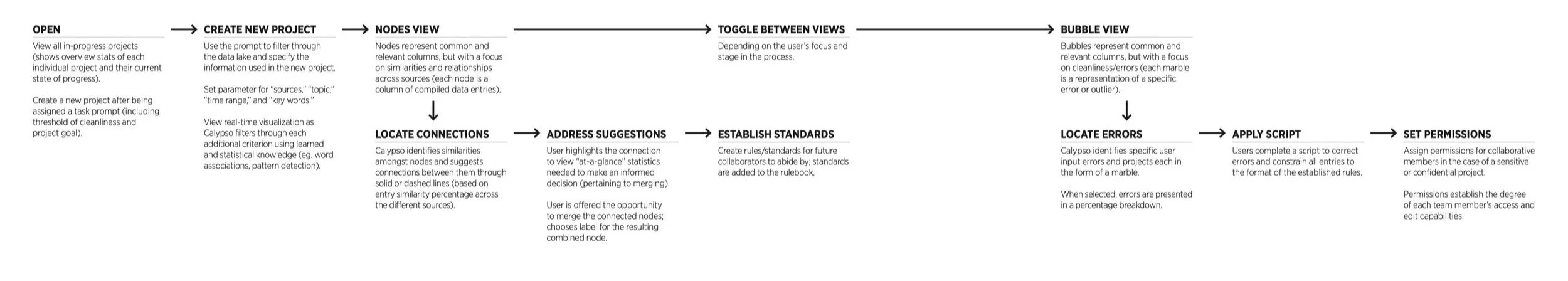 The task flow denotes the step-by-step capabilities of the data-processing program, Calypso.